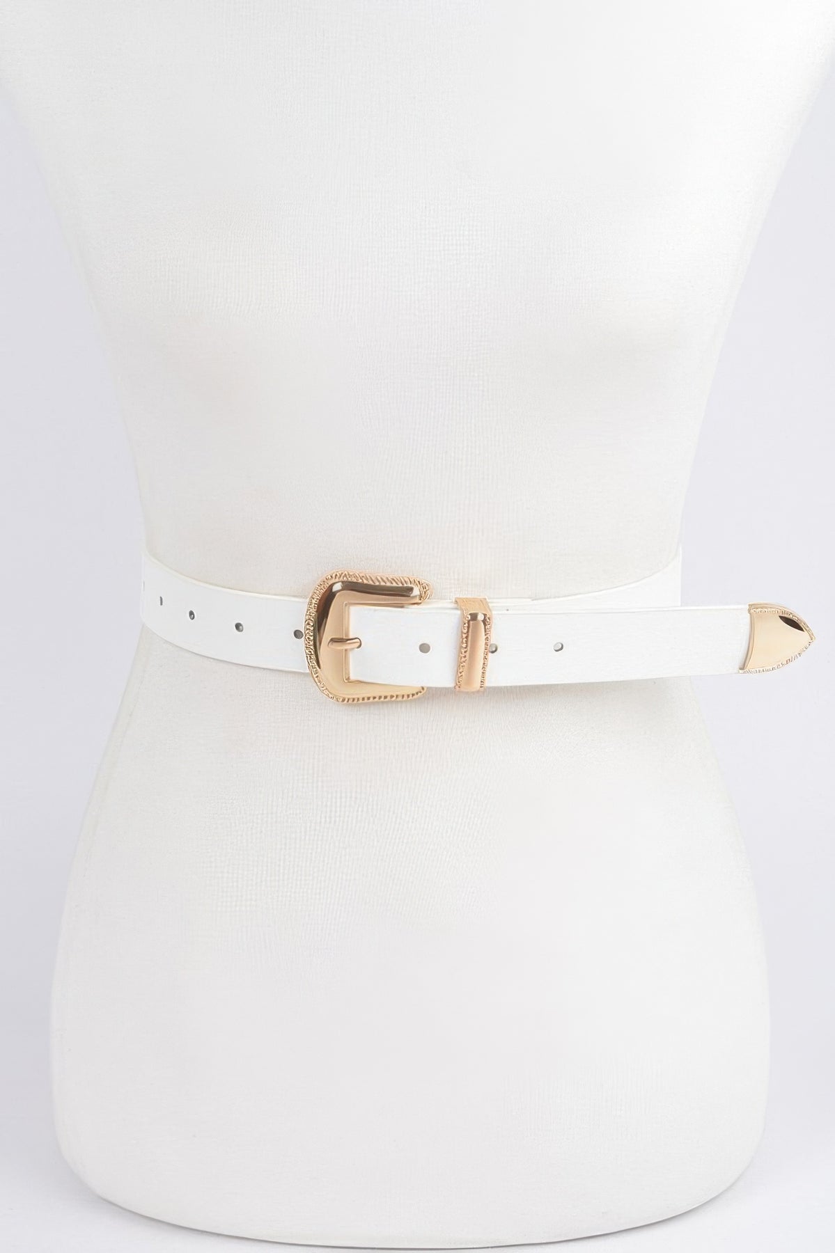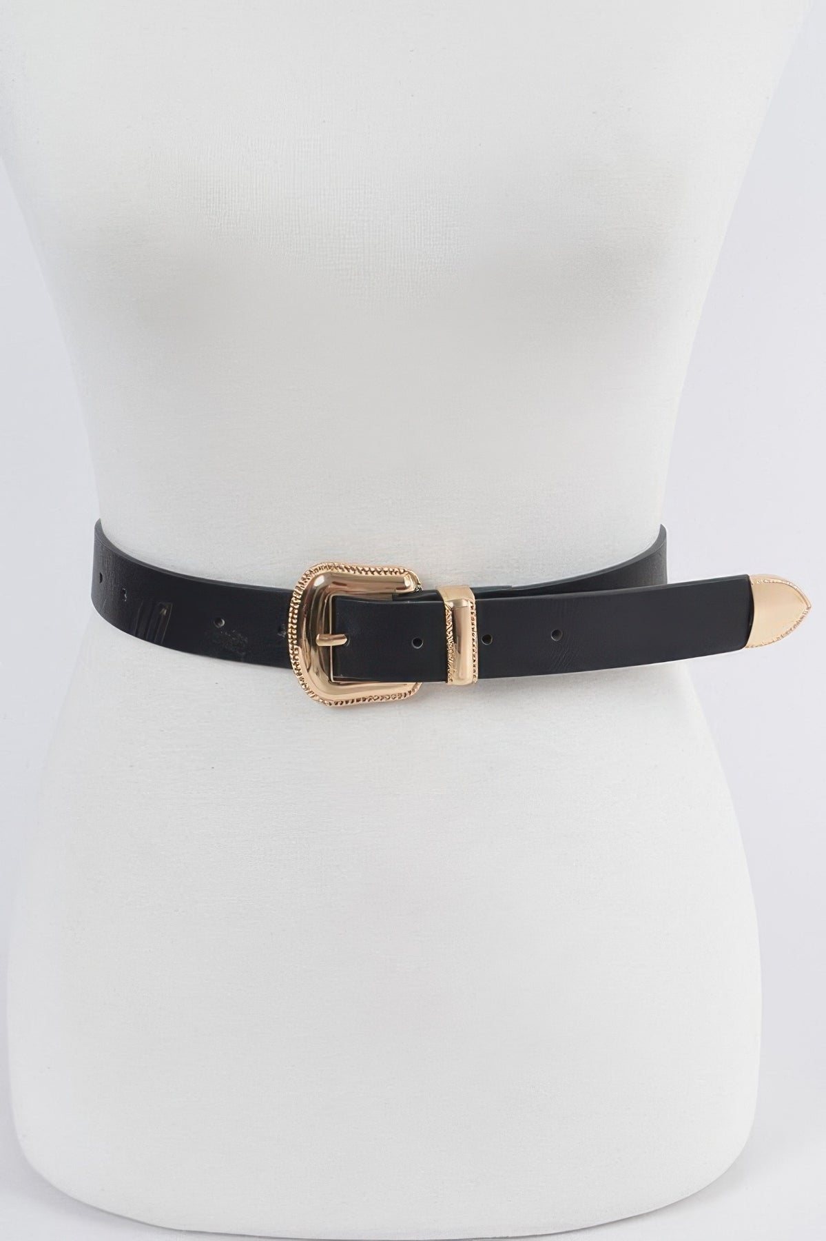 Step up your style game with the Metal Faux Leather Belt, an essential accessory that combines timeless charm with modern sophistication. Featuring a sleek gold buckle and classic faux leather finish, this belt is perfect for cinching your favorite dresses or adding polish to your workwear.