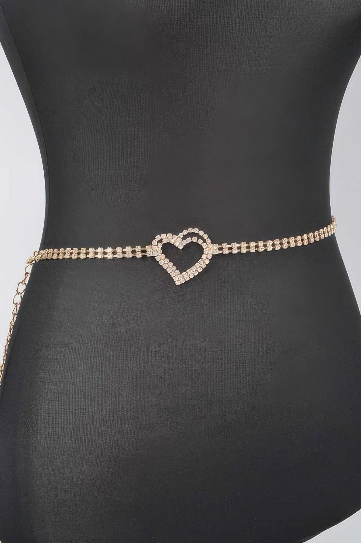 Add a touch of romance and radiance to your look with the Rhinestone Heart Chain Belt. Featuring a heart-shaped clasp and dazzling rhinestone embellishments, this waist belt delivers charm and elegance in equal measure. It's the perfect accessory to highlight your silhouette while adding sparkle to both casual and dressy ensembles.