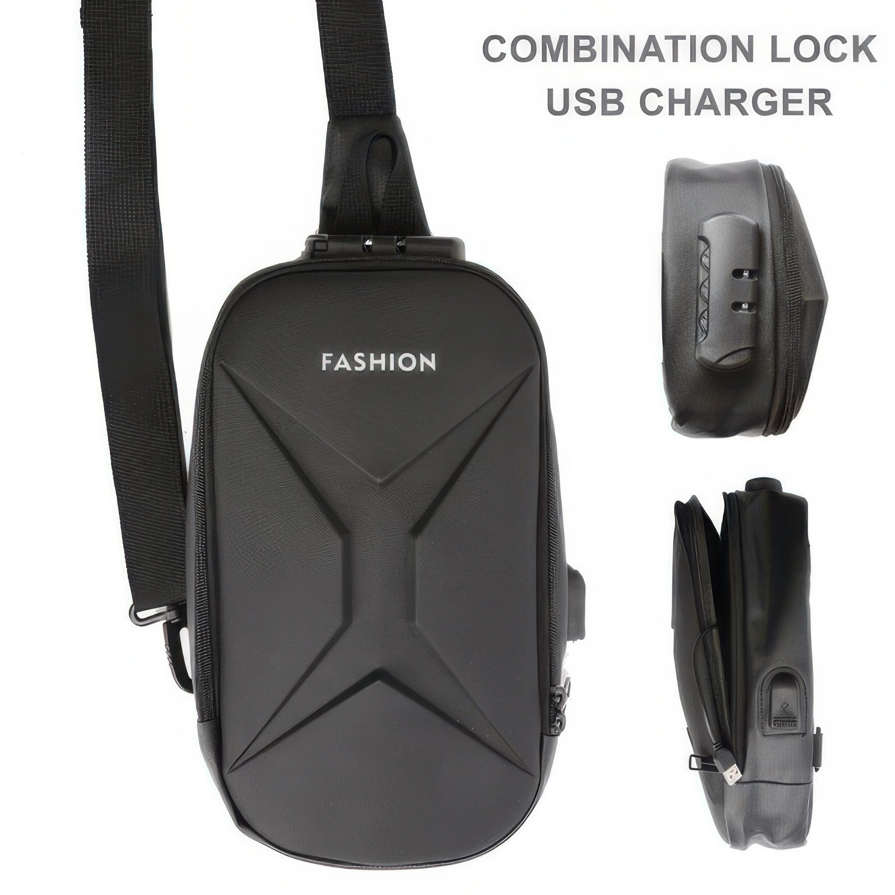 Designed for security and convenience, this sling bag features a USB charging port and password lock in a sleek hard-shell body. With a slim, structured silhouette, it's ideal for travel, commuting, or everyday carry. The adjustable strap ensures comfortable wear, while multiple compartments keep your essentials organized and safe. Perfect for tech-savvy travelers or city life on the go.