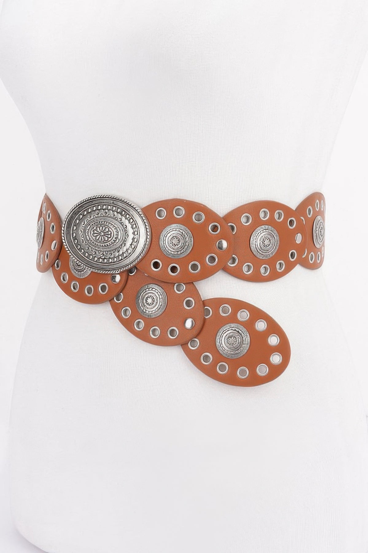 Faux Leather Oval Shape Vintage Belt