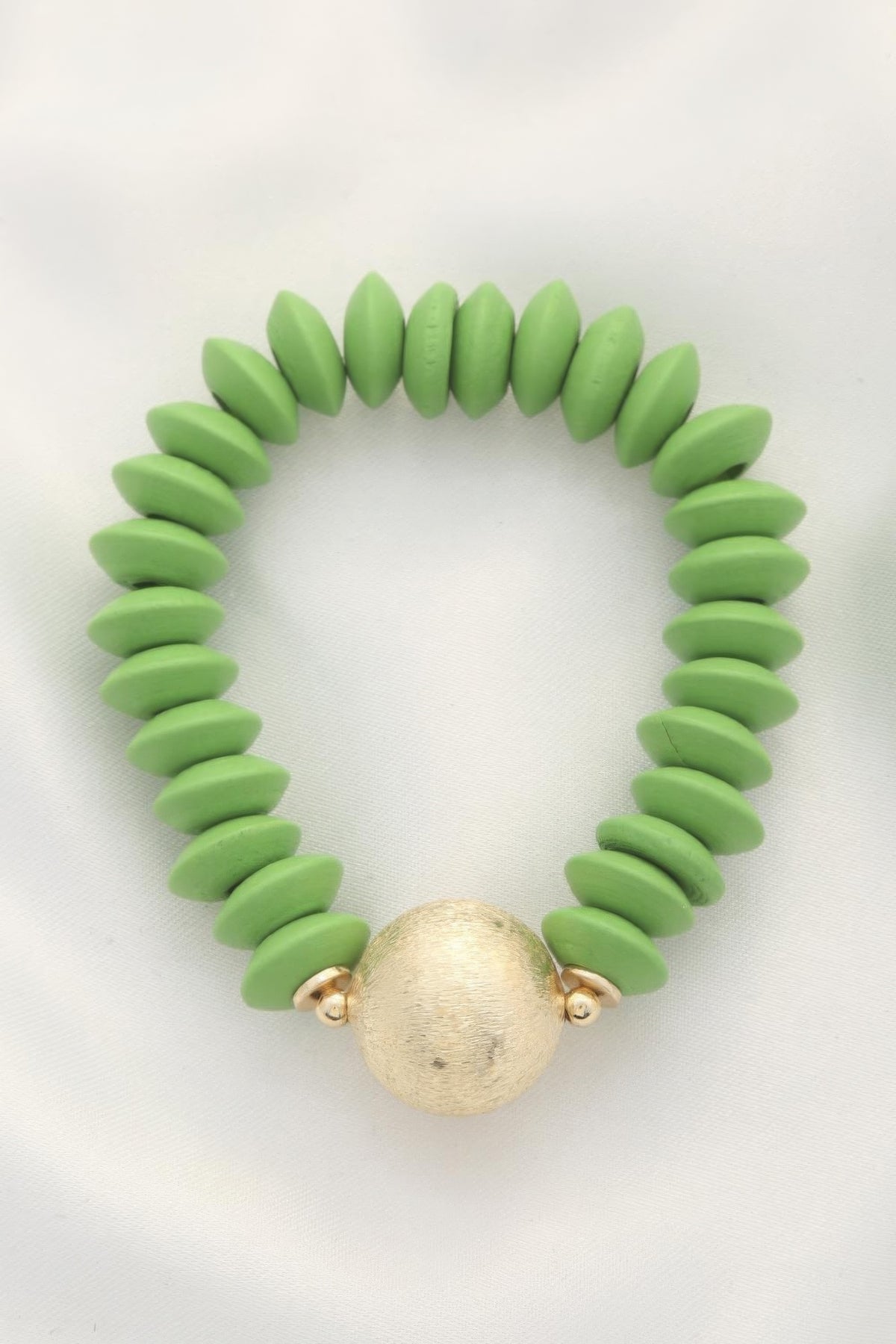 Why Choose the BALL BEAD WOOD DISC BRACELET in Green and Beige?