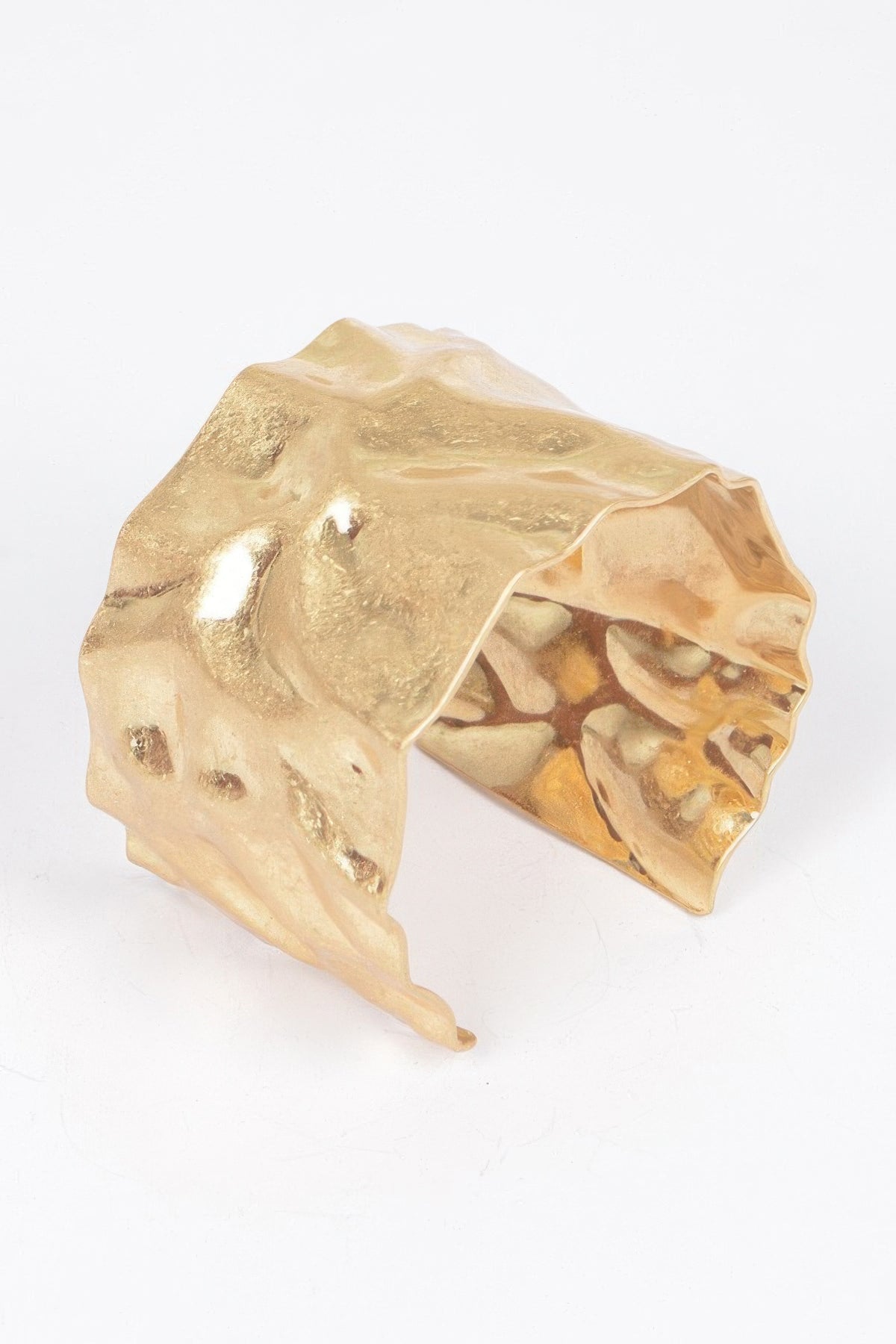 With its hammered texture and luxurious gold finish, this cuff is perfect for those who want to add a bit of edge and sophistication to their jewelry collection. It's a versatile piece that can be dressed up or down to suit any occasion.