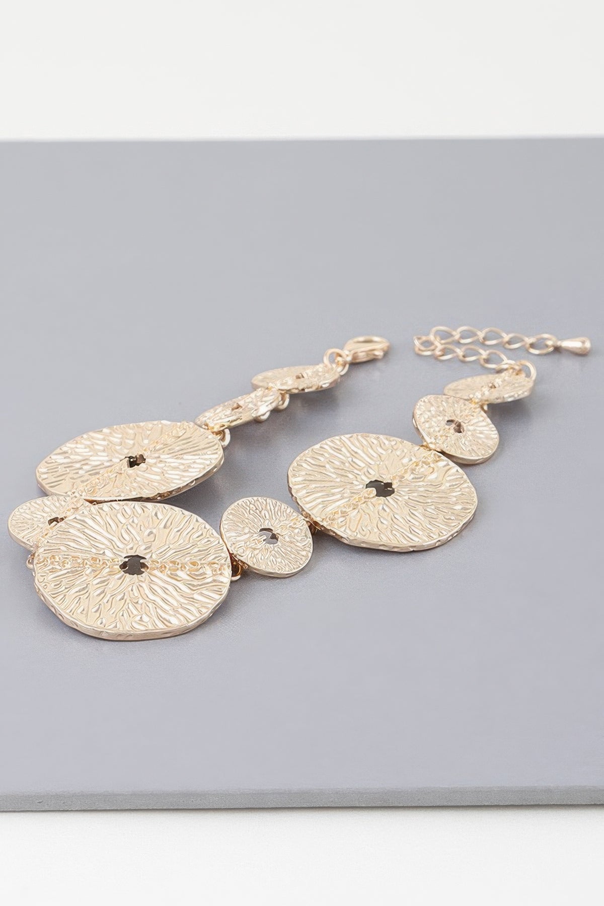 Add the Multi Hammered Disc Bracelet to your collection today and enjoy a chic, versatile accessory that complements any outfit!