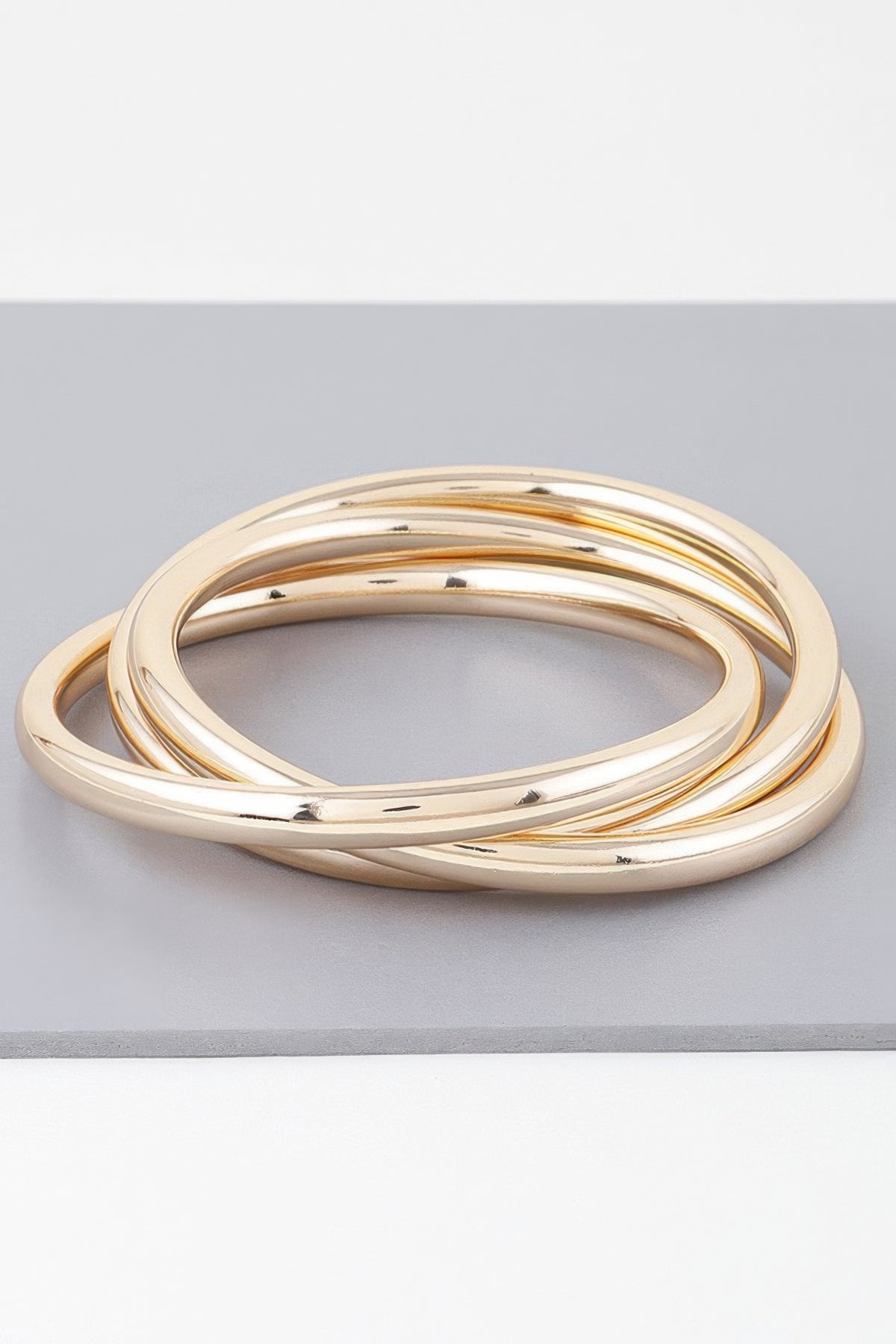 Design: Features three stacked bangles with a shiny, smooth finish, creating a stacked, sophisticated look