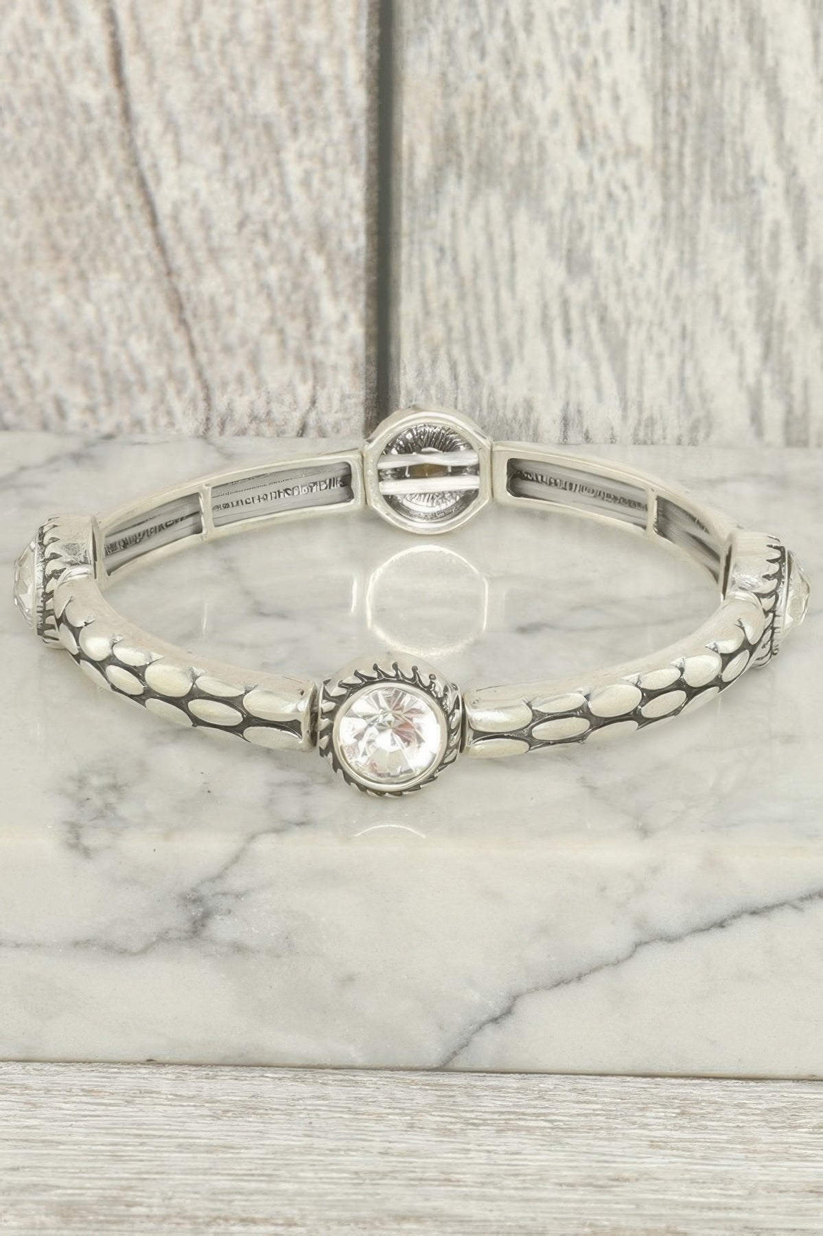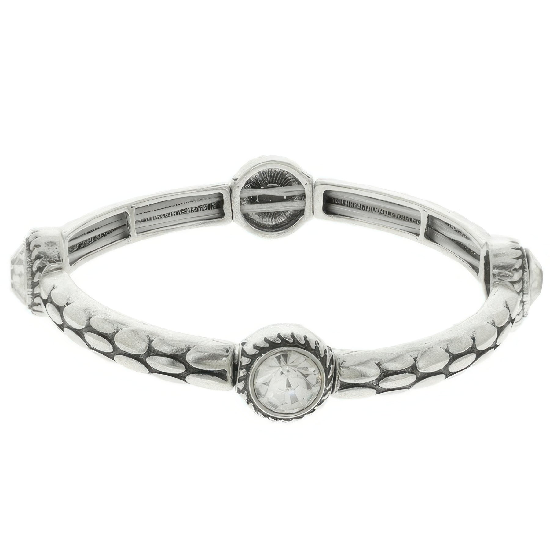 Elevate your wrist game with this jeweled scale-pattern stretch bracelet. Designed with a snakeskin-inspired texture and bezel-set crystals, it combines western flair with glamorous edge. Comfortable and bold, it's a standout piece for everyday styling or special occasions.