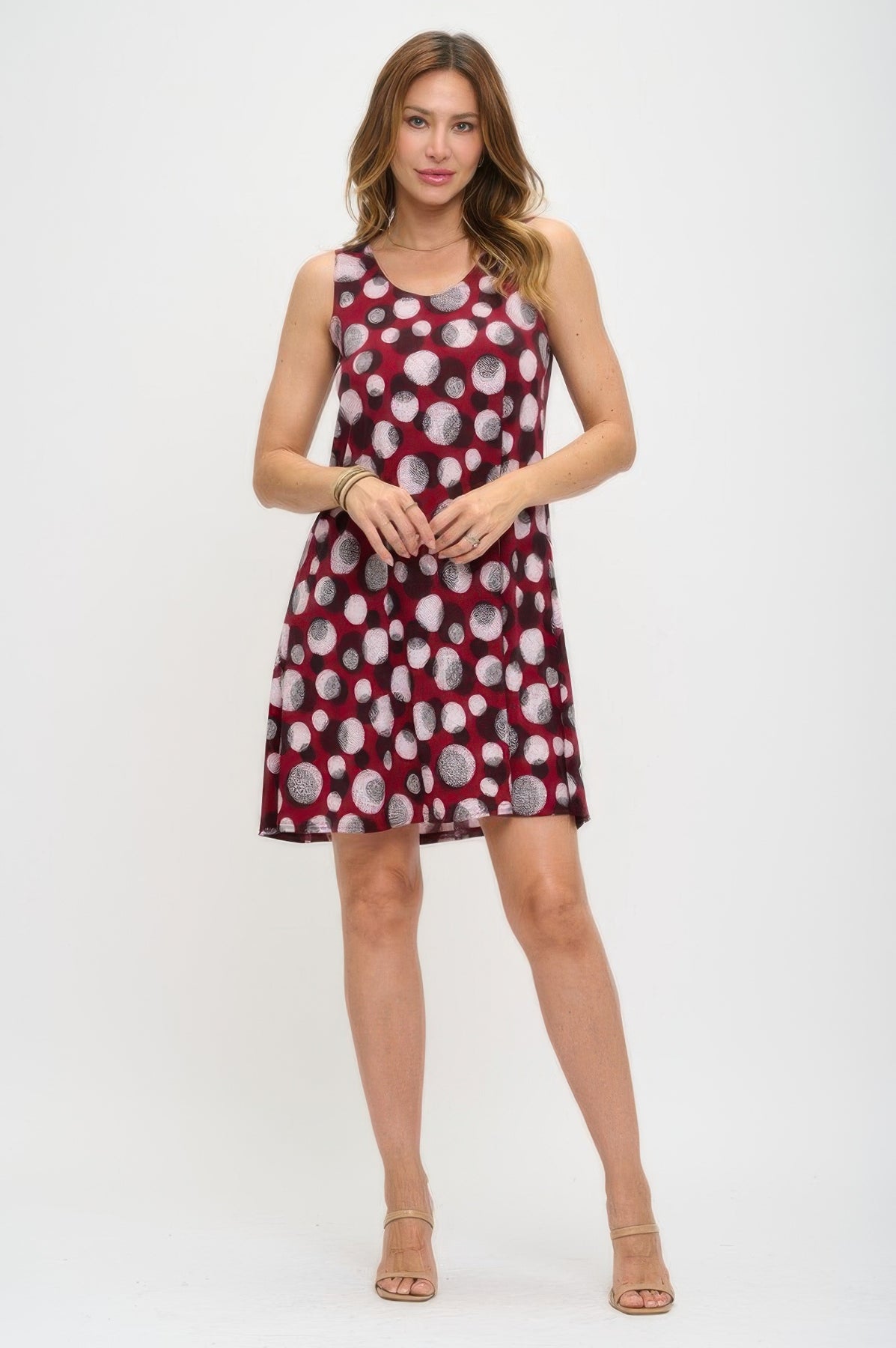 With a minimal silhouette and breathable feel, this tank dress is an effortless choice for everyday wear. The round neckline and above-knee length keep the look polished yet relaxed, while the stretch-blend fabric provides day-long ease. A simple design with endless styling possibilities, it’s great for everything from errands to laid-back lunches. Proudly made in the USA for consistent quality.