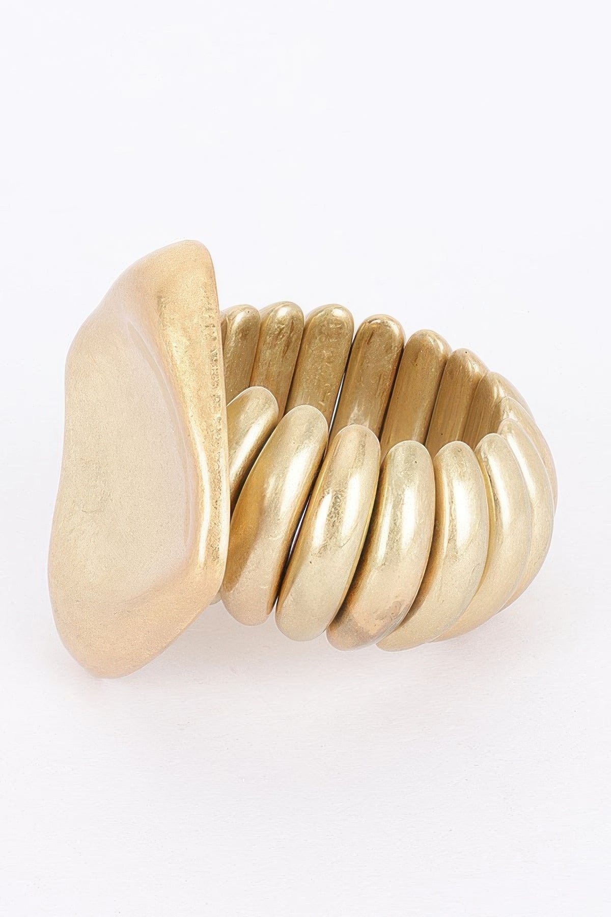 This bracelet stands out with its sophisticated design and luxurious gold finish. The alloy casting adds a unique texture, while the spring hinge makes it easy to wear without compromising on style. It's the perfect accessory to elevate any outfit with minimal effort.