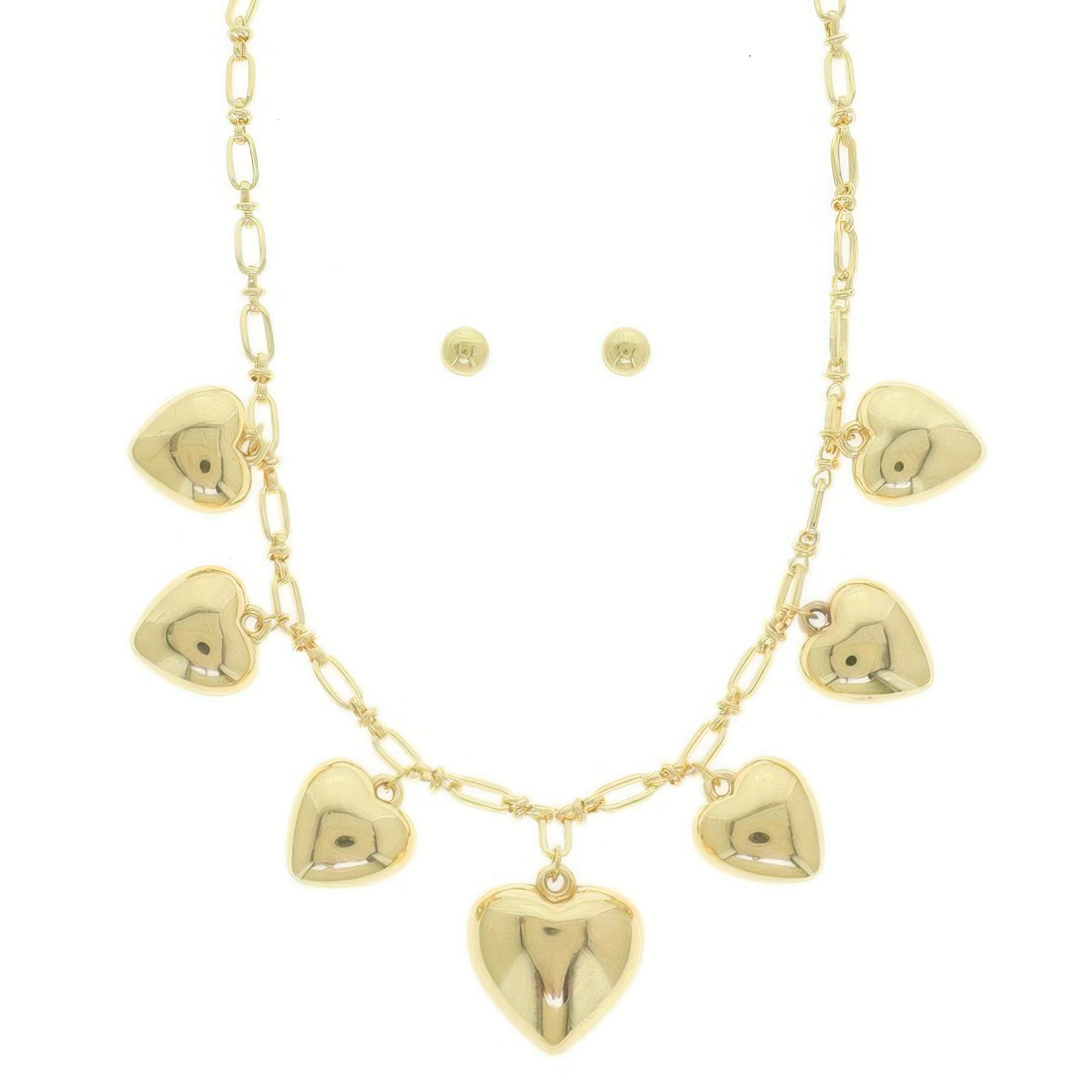 Celebrate love in style with the Heart Pendant Necklace Set. This romantic set includes a multi-heart charm necklace and coordinating stud earrings, offering a graceful and feminine touch to any ensemble. With its delicate chain and timeless design, it’s perfect for special occasions or everyday elegance. The versatile look makes it a thoughtful gift and a classic wardrobe staple.