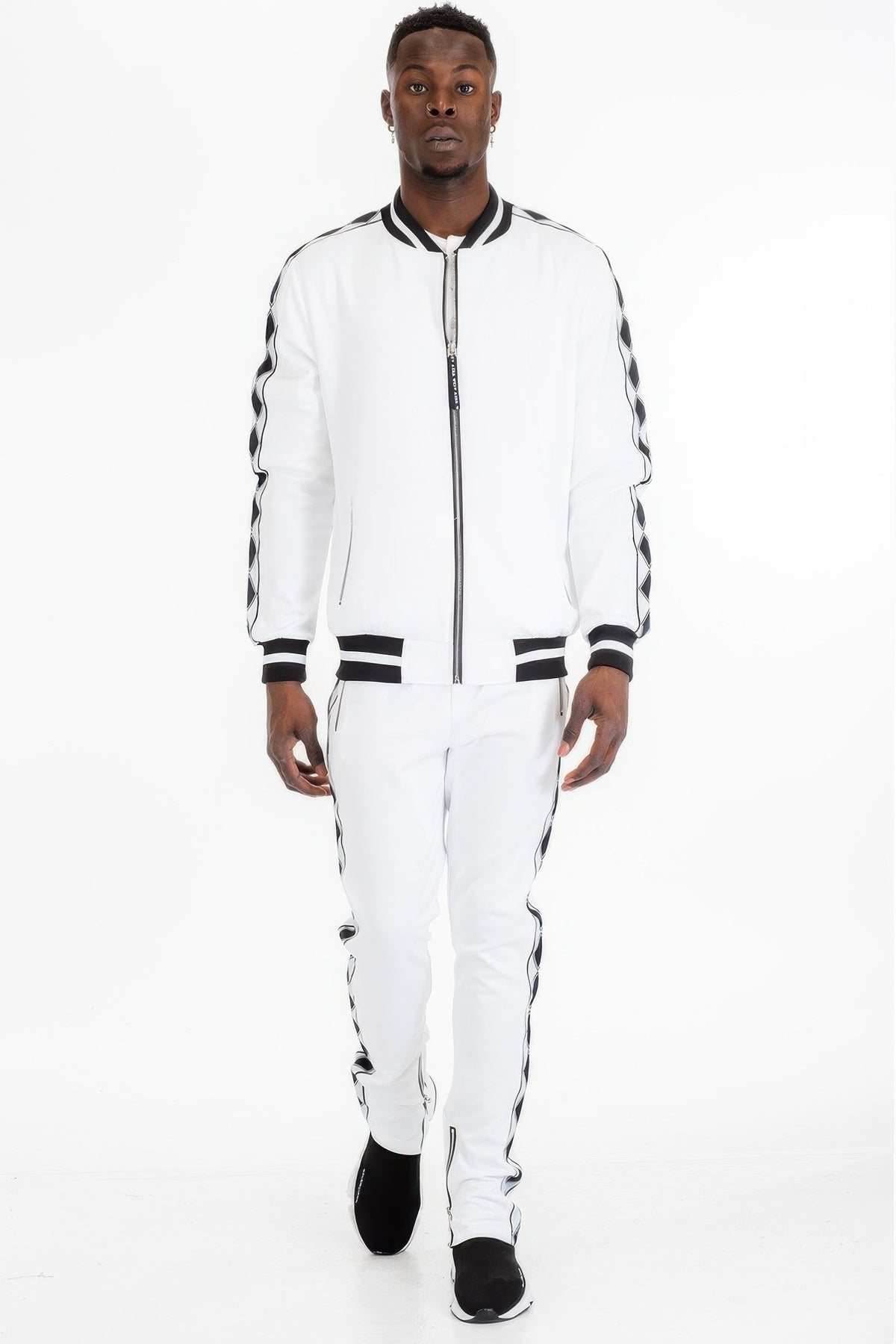 Elevate your athletic and casual wear with our Diamond Tape Track Set. This versatile track suit combines functionality with a modern design, perfect for workouts, running errands, or simply lounging in style.