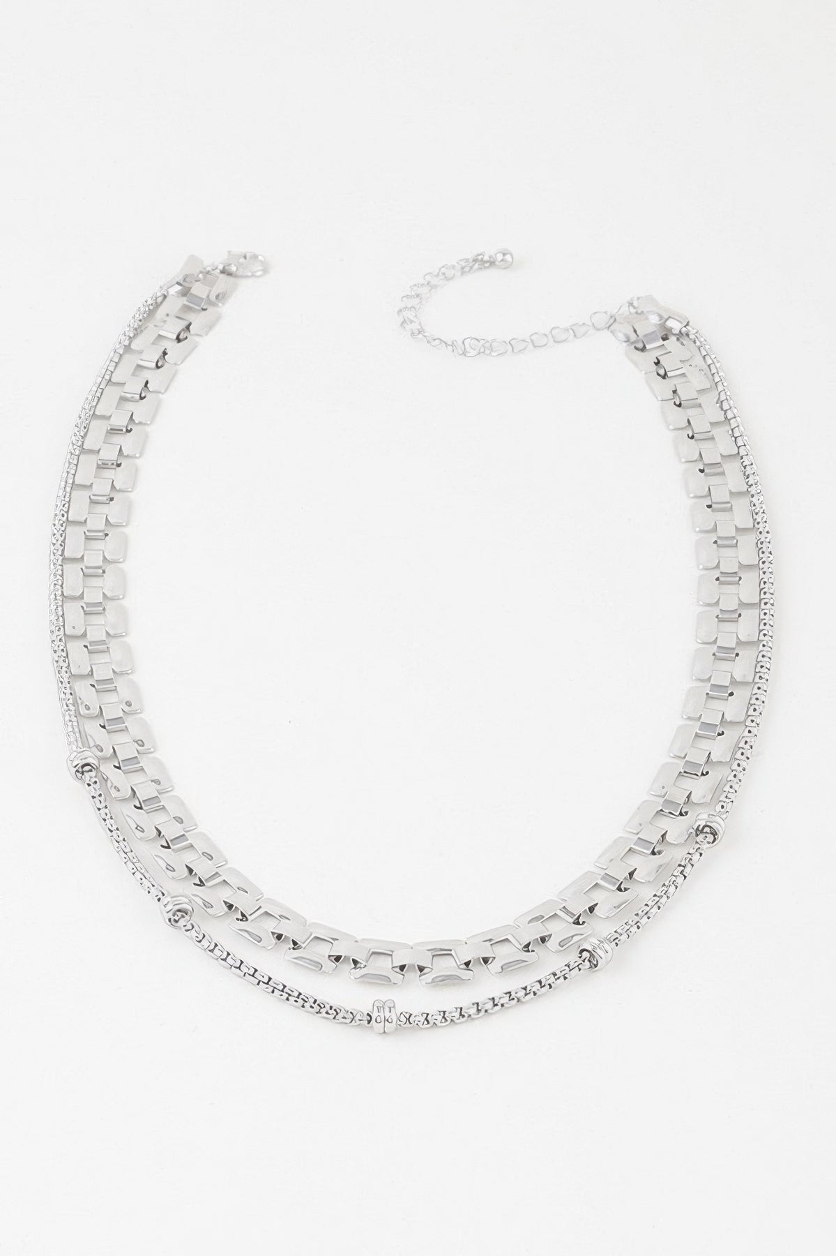 Sleek and minimal, the Double Box Chain Necklace offers clean lines and everyday shine. With two box chains layered into one, it provides subtle dimension while staying lightweight. A modern staple for effortless styling.