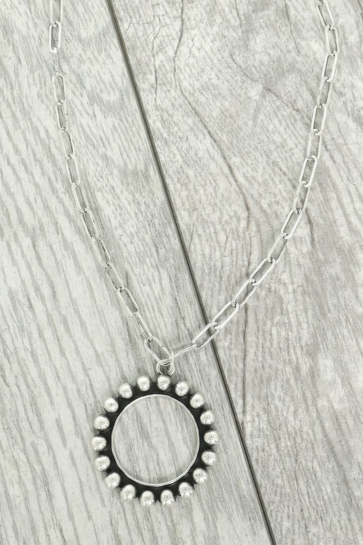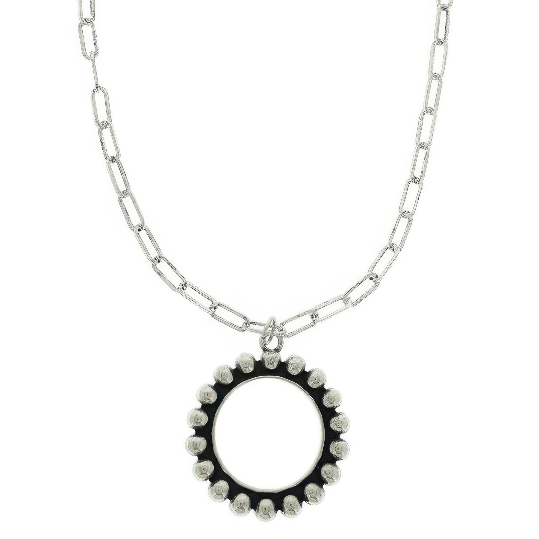 Oxidized silver-tone necklace with open circle pendant