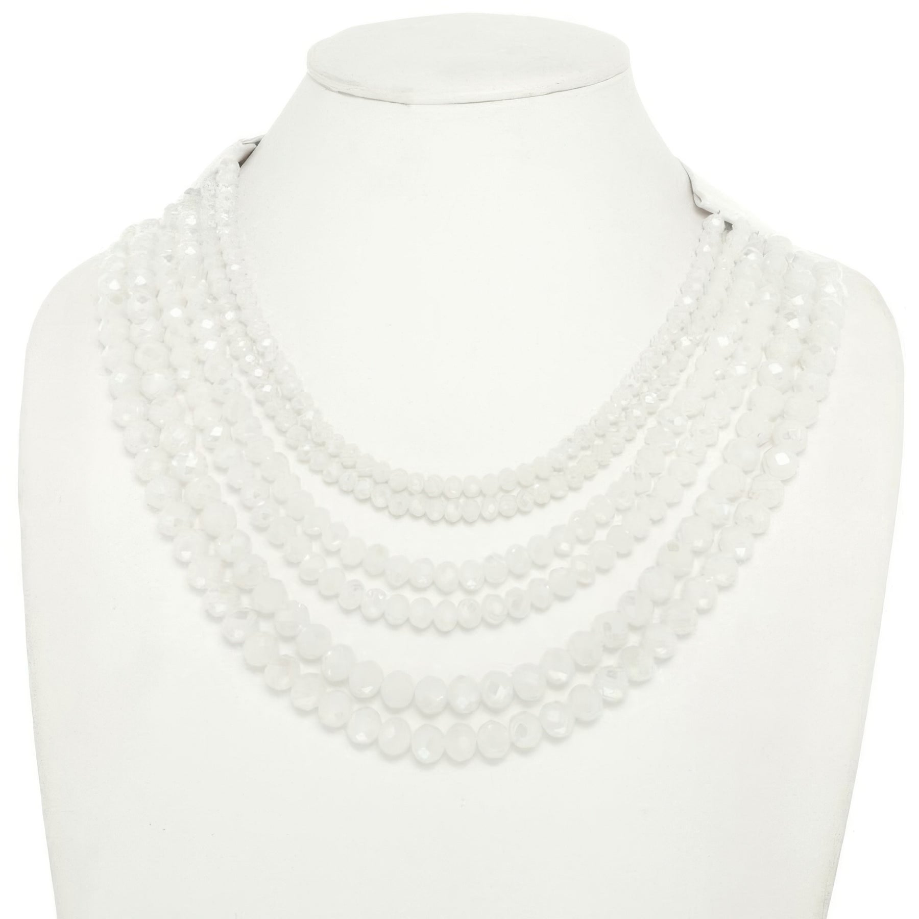 Sparkling and bold, this multi-strand faceted bead necklace adds glamour to any outfit. With its layered crystal-like beads and magnetic faux leather closure, it combines easy wear with statement style. Perfect for parties, weddings, or performances, this necklace delivers a dramatic effect with lightweight comfort. A standout accessory that adds sparkle and confidence to your look.