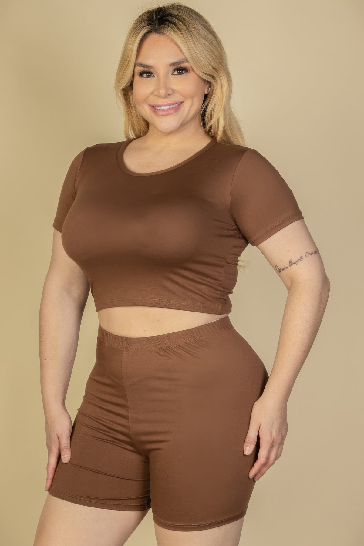 Why Choose Plus Size Short Sleeve Crop Top & Shorts Set